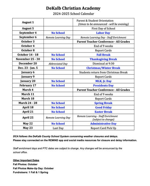 2025-2026 School Calendar